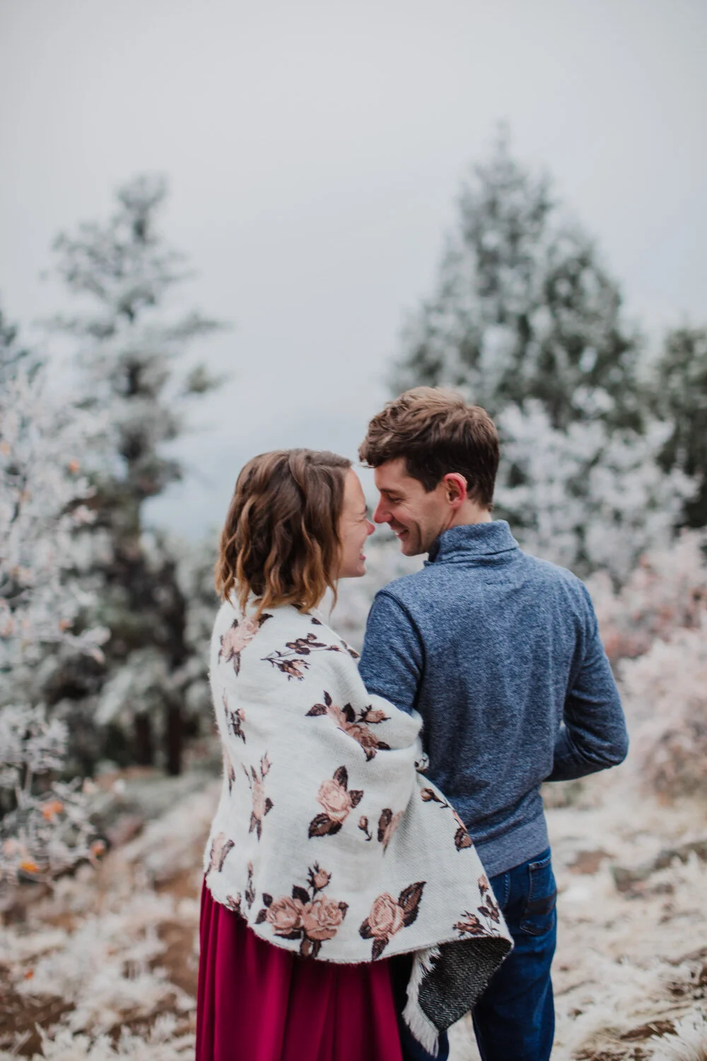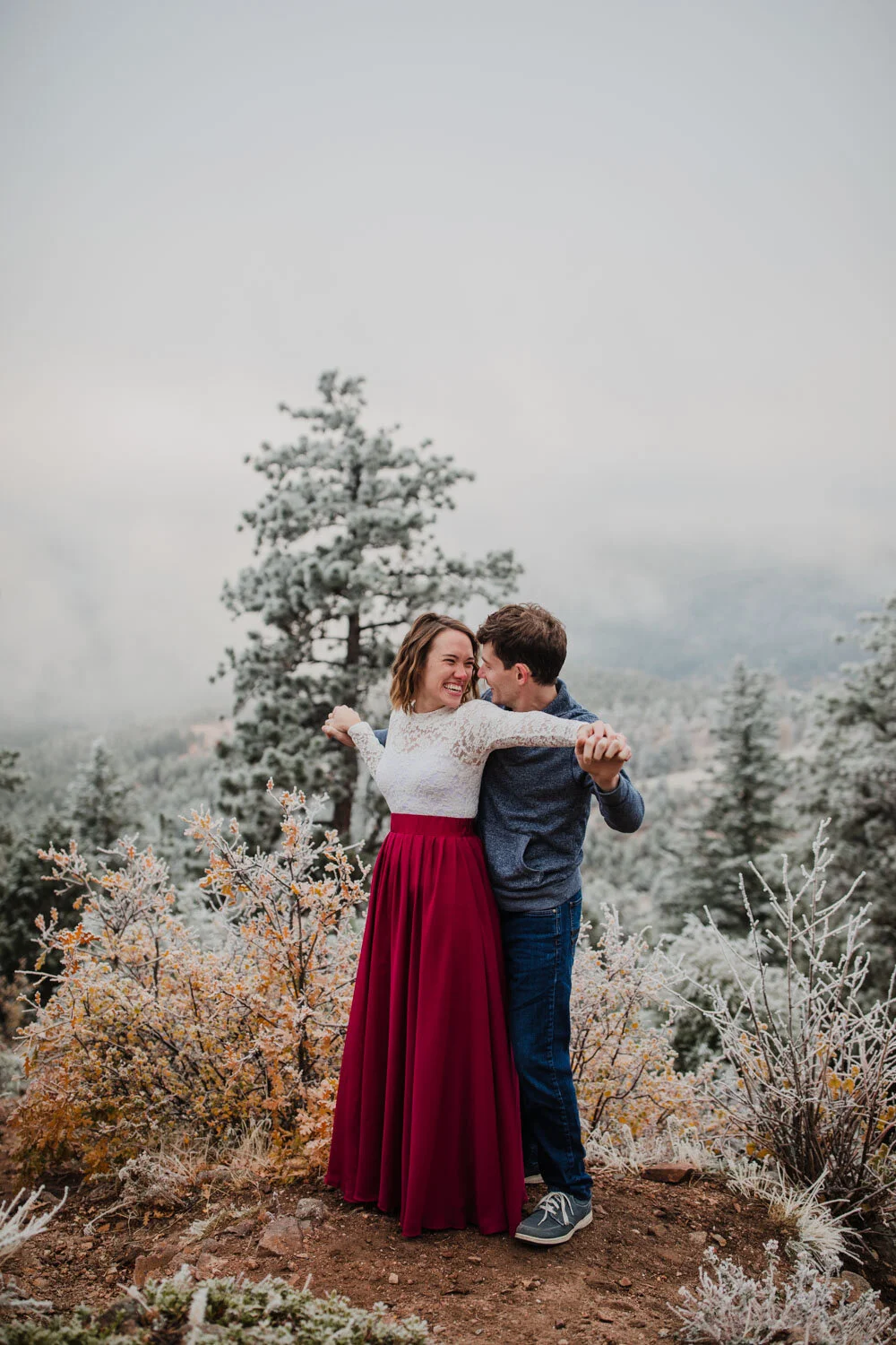 They were spending their honeymoon in Colorado, so we coordinated and planned for some beautiful fall, mountaintop photos. As we drove to the top of the mountain, however, we saw that things looked a little different than planned. Everything was covered in ice (like Narnia)… and it was beautiful.